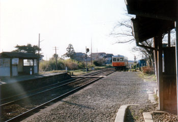 つくば方面行きの列車が入線して来ます。 こうしてみると北海道とはまた違った雰囲気で良いですね。 映画やドラマに出てくるような、 まさに 「田舎の駅」というイメージの駅でした。 田園風景な感じも良かったです。 |